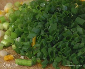 Рис отваривать в подсоленной воде на пару минут меньше, чем указано на упаковке, затем остудить.