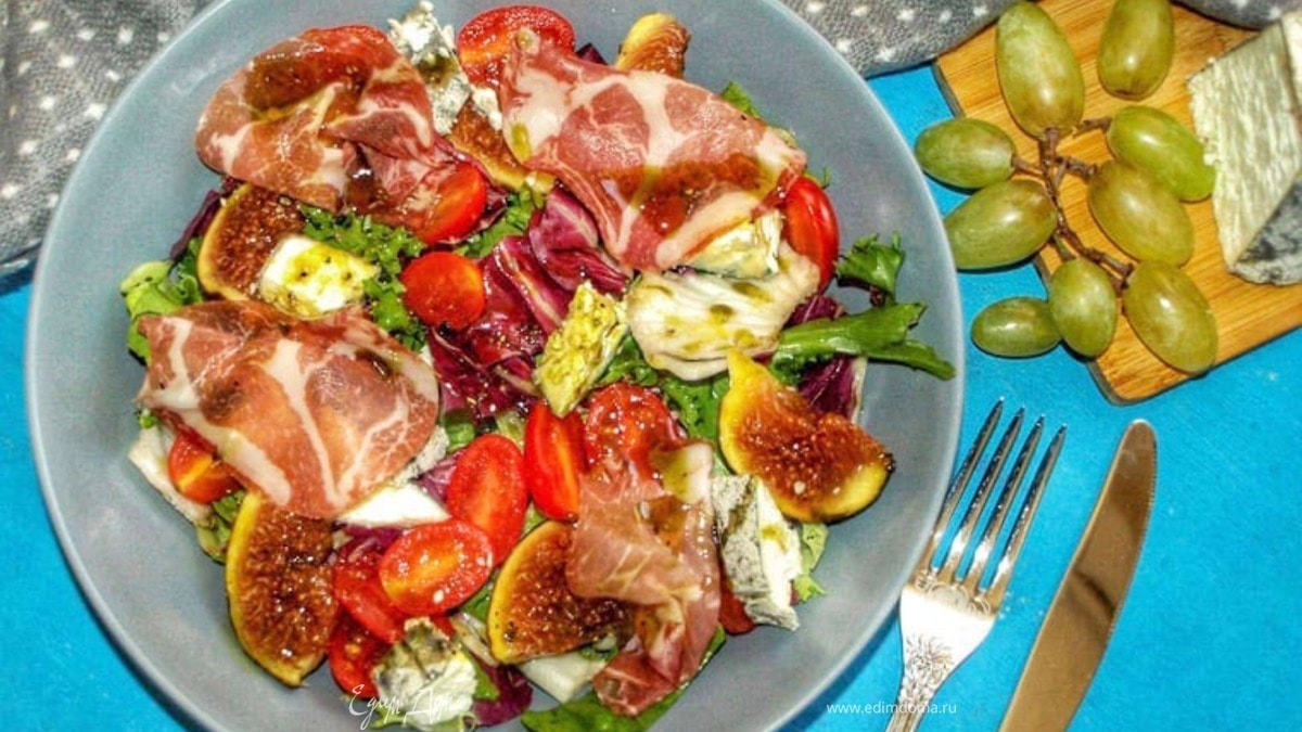 Салат с козьим сыром, инжиром и сыровяленым мясом
