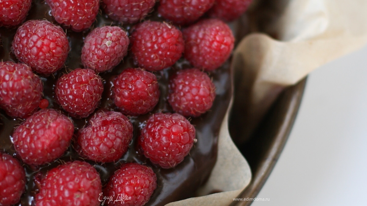 - Шаг 3Готовим глазурь. Нагрейте сливки и смешайте их с растопленым шоколадом. Полейте сверху торт. Украсьте малиной.