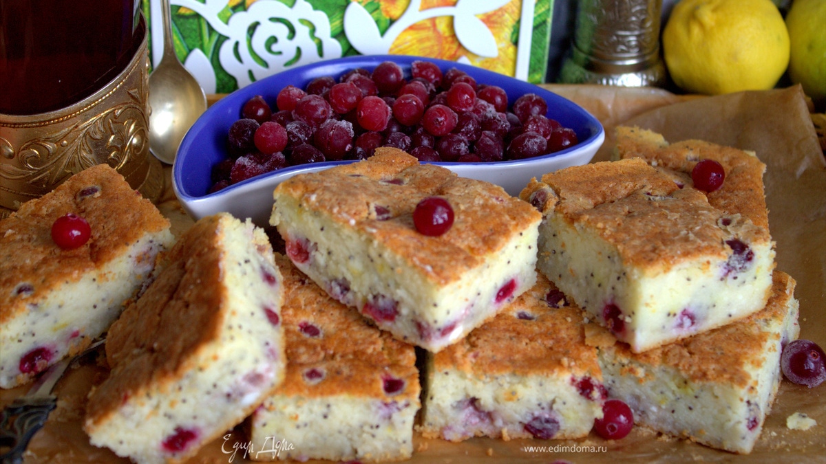Пирог на твороге с клюквой