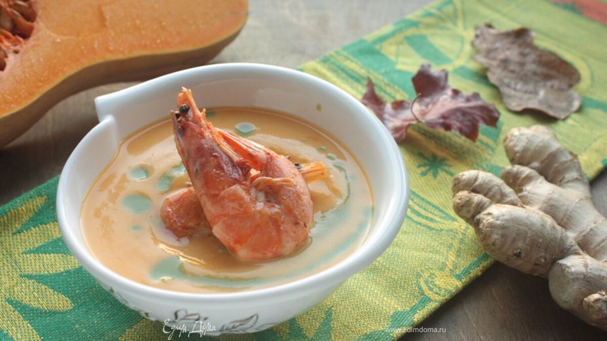 Осень — пора сытных супов, которые радуют не только желудок, но и глаз своими яркими красками! Один из таких ярких (и внешне, и по вкусовым качествам) супов я предлагаю вам попробовать. Деликатная пряность имбиря, сладость тыквы, вкус креветок и нотка зеленого соуса чатни — пусть эта осень будет вкусной и согревающей!