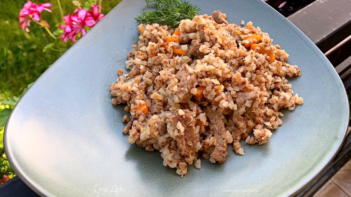 - Шаг 4Убавляем огонь до минимума и забываем на 30–35 минут. Открываем казан, формируем горку из гречки, делаем углубление и туда кладем щедрую ложку сливочного масла. Закрываем крышку, даем еще настояться. Перемешиваем и подаем к столу! А если вы при подаче добавите пару капель трюфельного масла, будет просто восторг!
