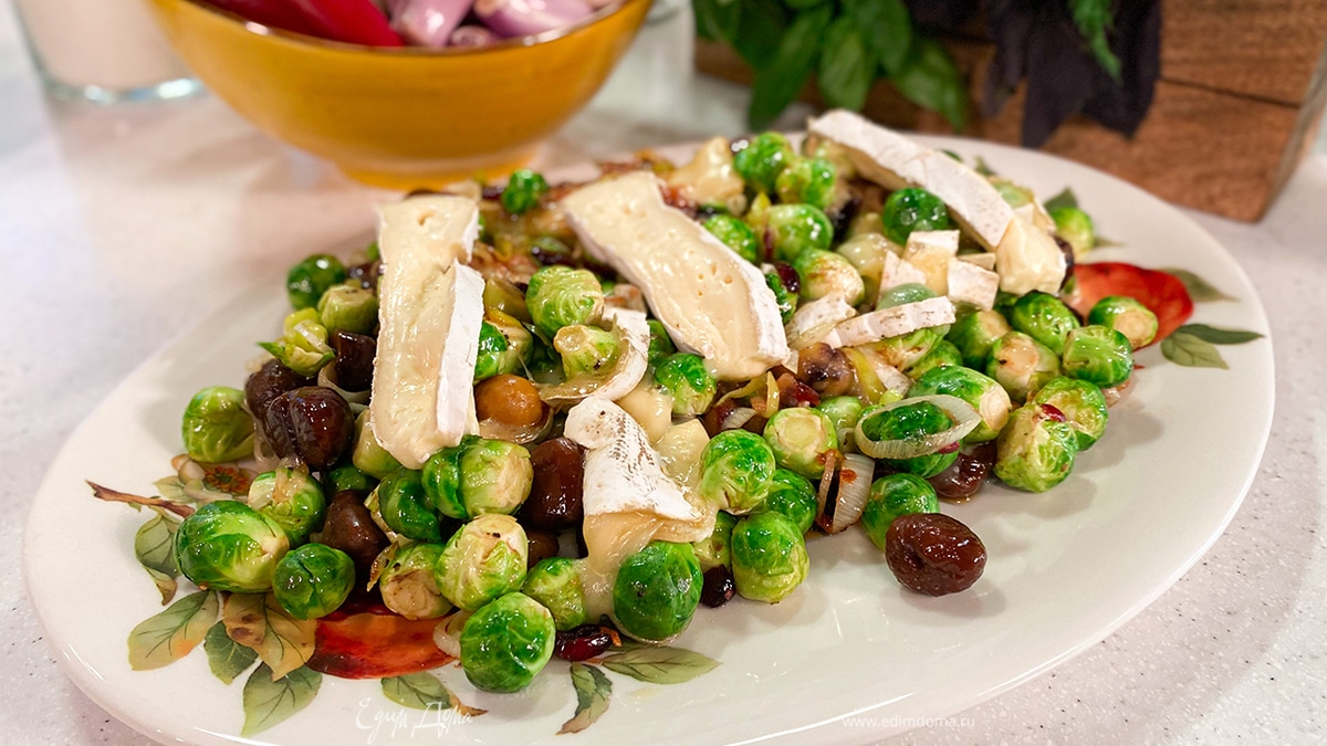 Брюссельская капуста, запеченная с каштанами и сыром бри
