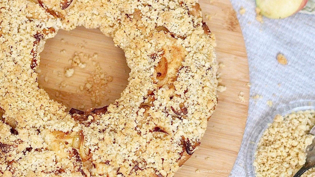 Сверху выложить яблочную начинку и засыпать крошкой. - Шаг 8