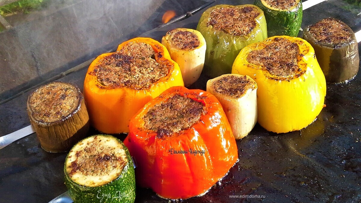 Овощи гриль с мясным фаршем