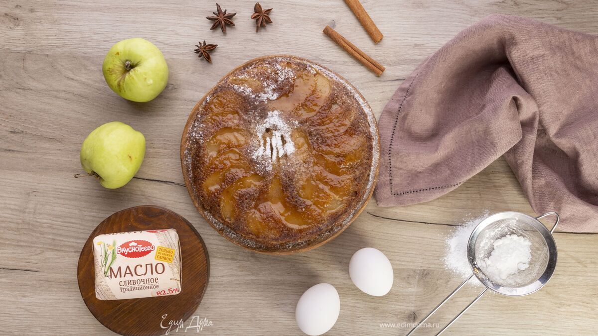 По кругу выложите в форму яблоки, залейте тестом. Выпекайте в заранее разогретой до 180°C духовке 40 минут. - Шаг 10