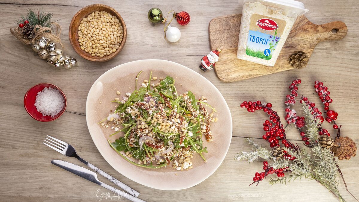 Салат с вялеными томатами, руколой и творогом