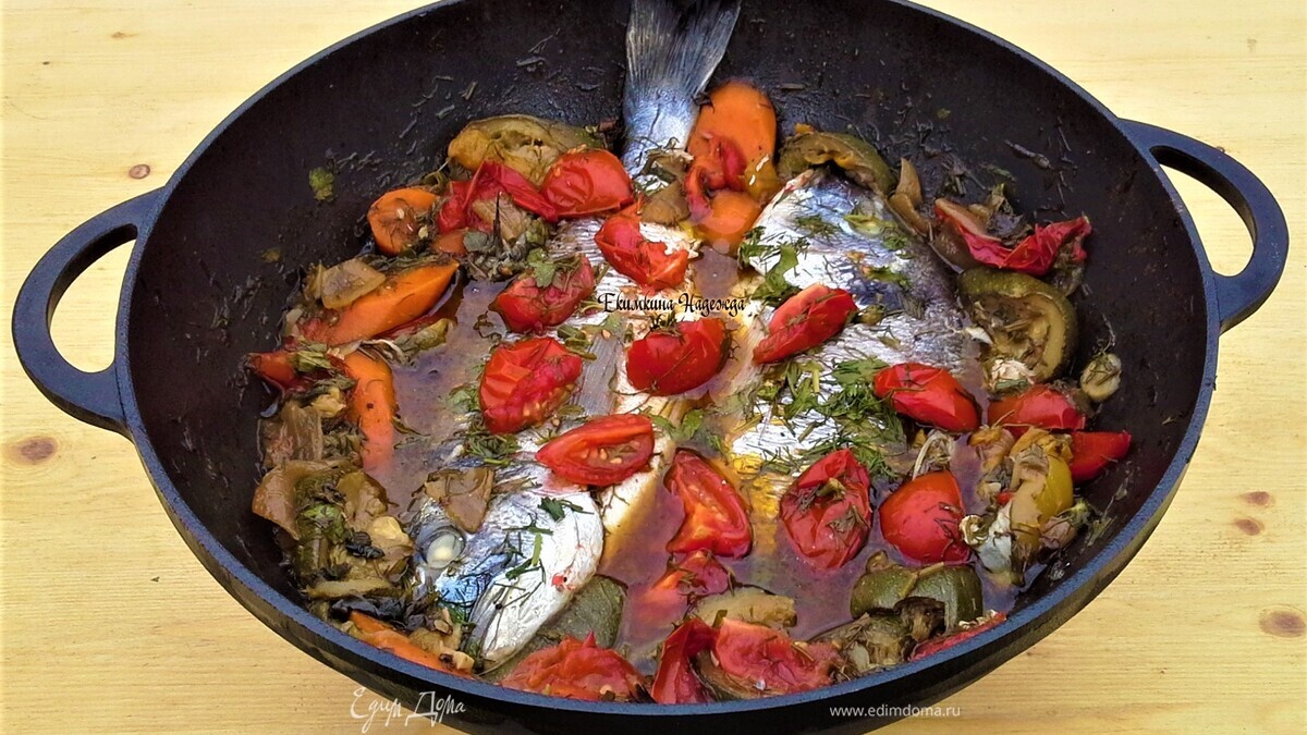 Овощи хорошо пропеклись, но не разварились. Рыба сочная, ароматная, вкусная!