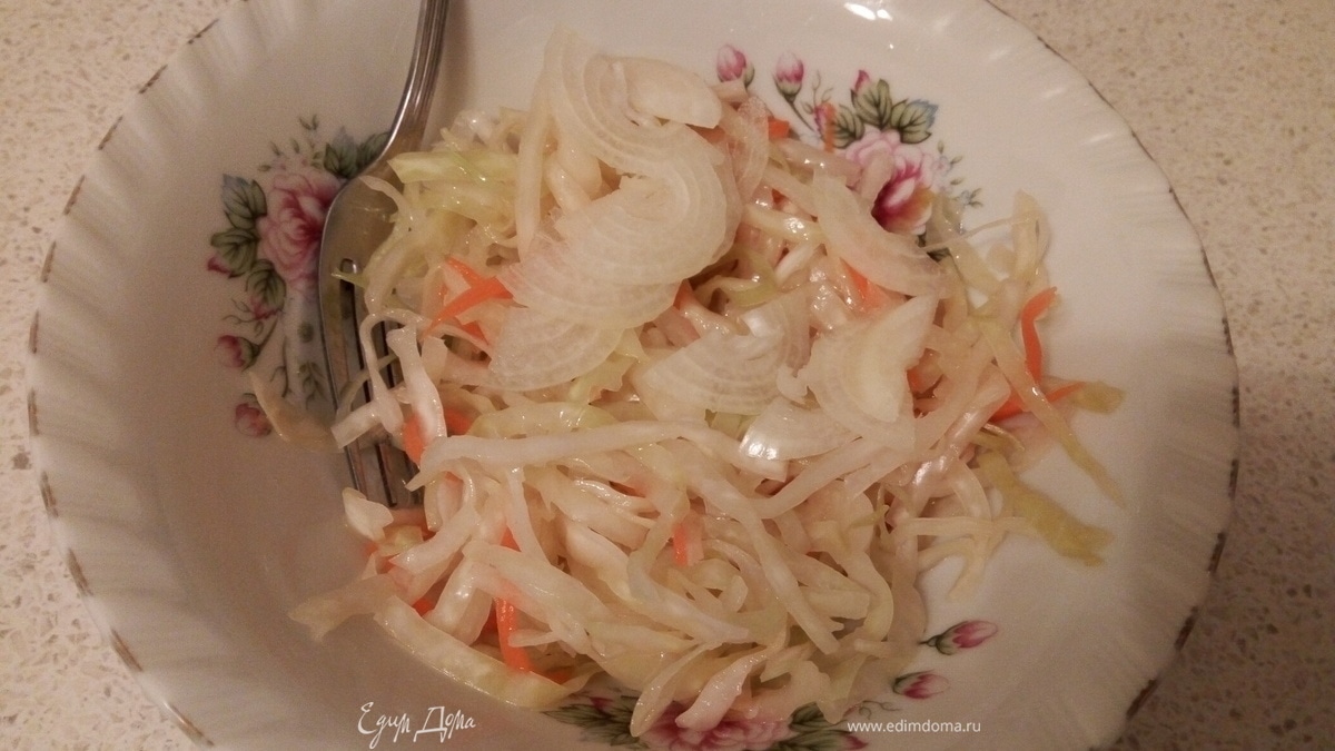 Варим картошечку, а в салатнике капусточку заправляем репчатым луком и маслом. Приятного аппетита!
