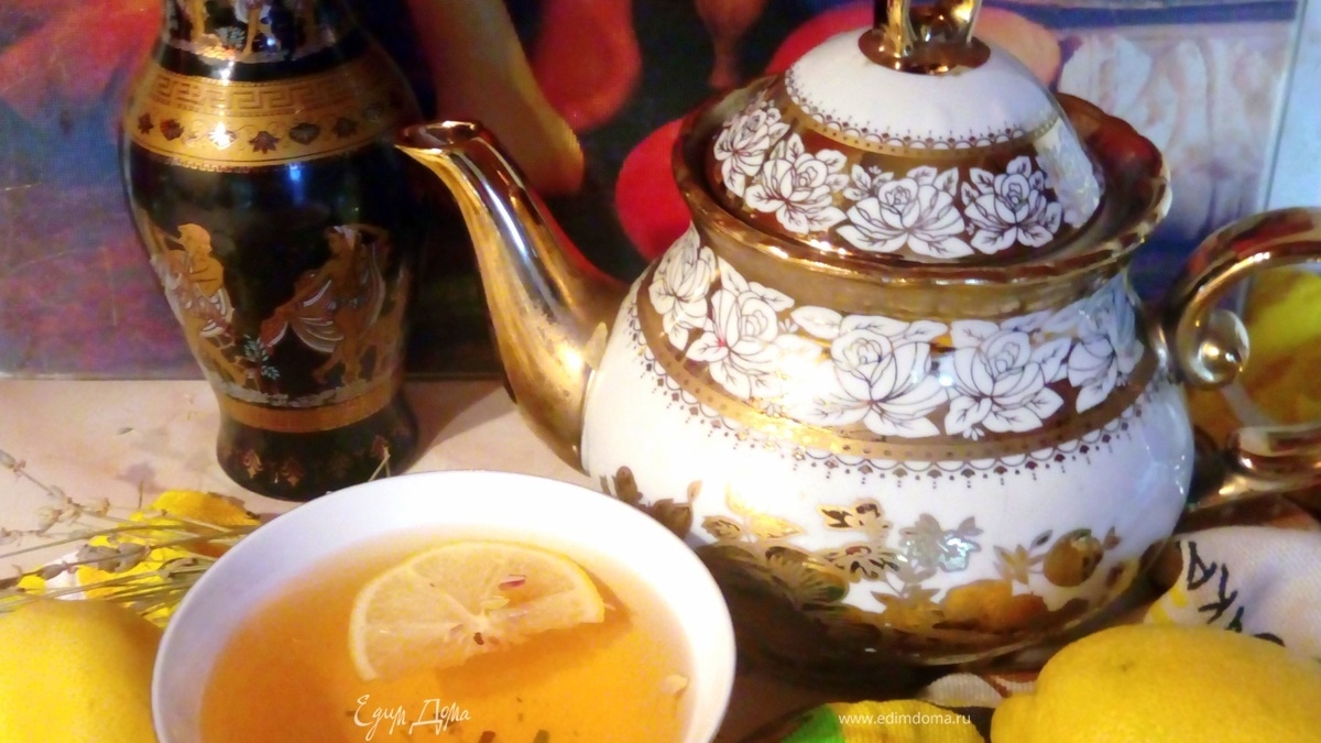 Даем настояться 40 минут и подаем горячий ароматный травяной чай с долькой лимона.