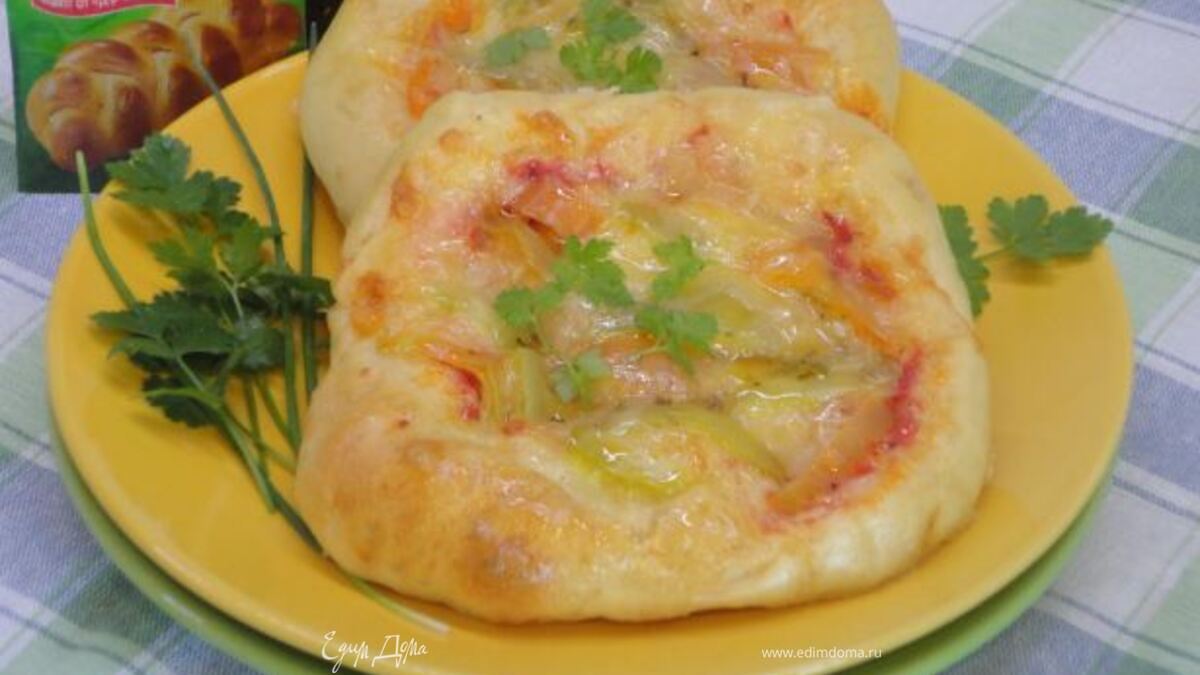 Противень поставим в заранее разогретую до 200–220°C духовку. Выпекаем мини-пиццы с сыром и кусочками сладкого перца не дольше 8 мин, пока края не подрумянятся, а сыр не расплавится. Пиццу печем на высокой температуре короткое время. Тогда она не успеет высохнуть, а лишь обретет хрустящую корочку.