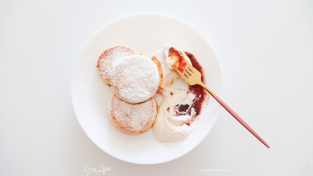 Перекладываем их в форму для запекания и выпекаем в течение 15 минут. Наши сырники готовы! Подаем их со сметаной, вареньем, сгущенкой, да с чем угодно! Приятного аппетита!