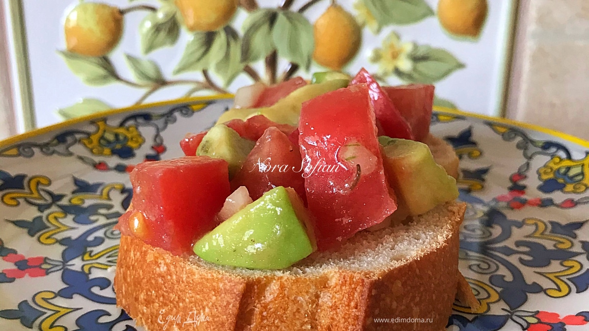 Можно сделать брускетту, слегка поджарить багет и сверху разложить салат. Приятного аппетита!