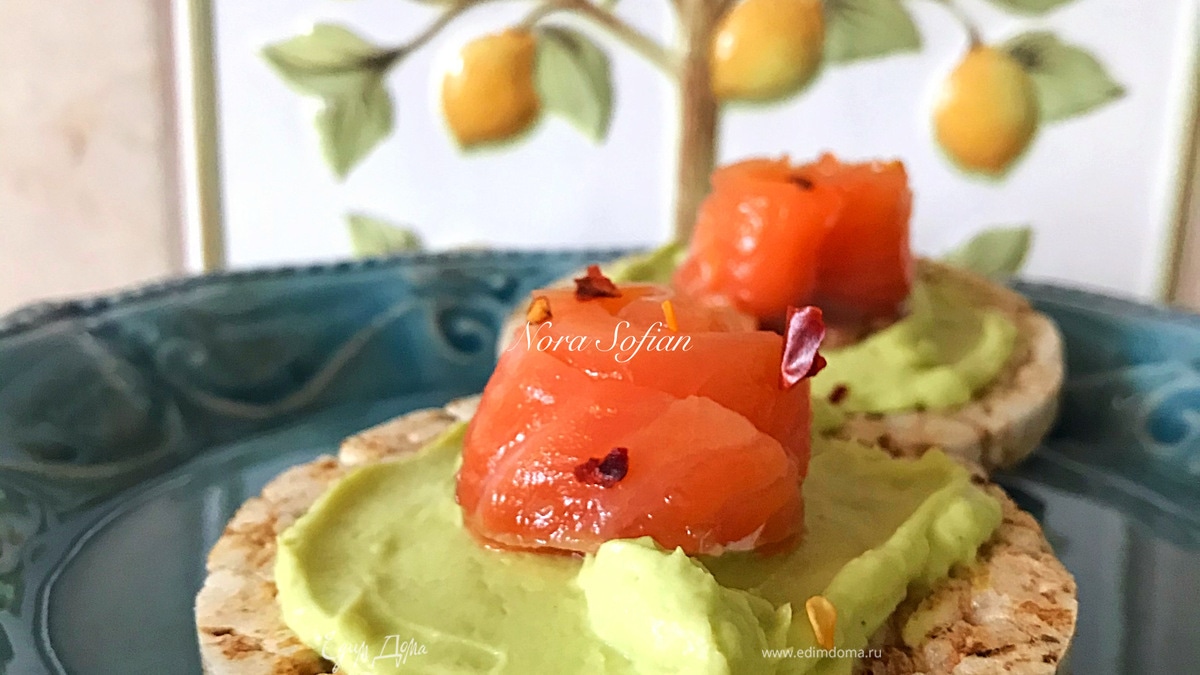 Мы очень любим такое сочетание: хлебцы, паста из авокадо и малосольная семга. Рецептом семги я уже делилась с вами: ссылка на рецепт Приятного аппетита!