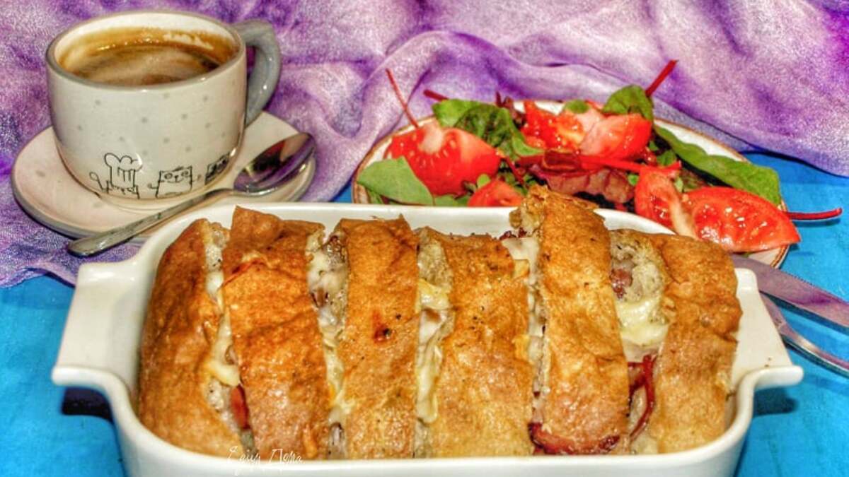 Чиабатта, запеченная с сыром и беконом