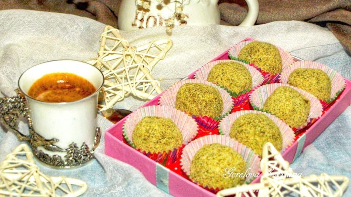 Формируем из полученной массы небольшие шарики и обваливаем в тыквенной муке. Обвалять можно в какао, семенах чиа, семенах мака или сахарной пудре.