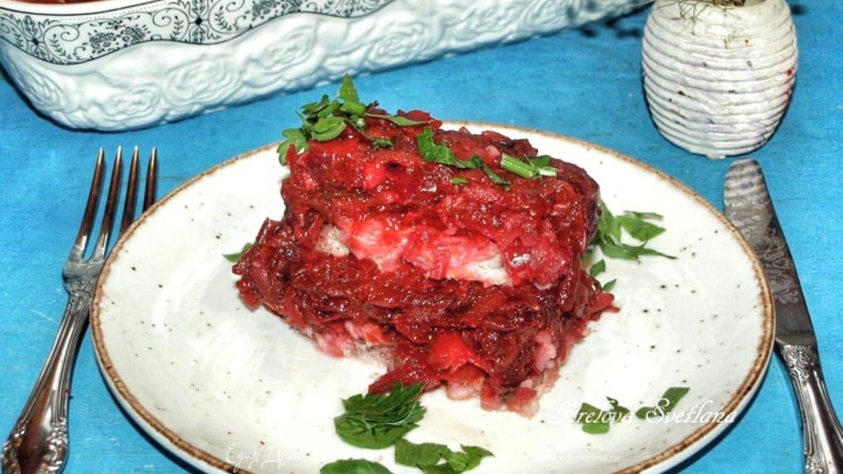 На холод отправлять необязательно. Рыба со свекольным маринадом вкусная в теплом и холодном виде. На гарнир можно подать картофель или рис. - Шаг 10