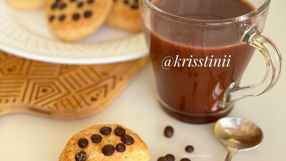 По истечении времени тесто раскатать в пласт толщиной 1 см и вырезать круги. Сверху посыпать шоколадными каплями или шоколадом. Немного вдавить в тесто. Выпекать на пергаменте 15–20 минут (до румяности) при 185°C.