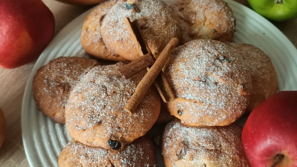 Мягкое печенье с яблоком, тыквой, изюмом и миндалем. Очень ароматное, немного похоже на мини-бисквиты, только немного суше.