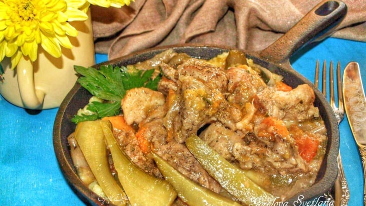 Свинина с маринованными огурцами и курагой