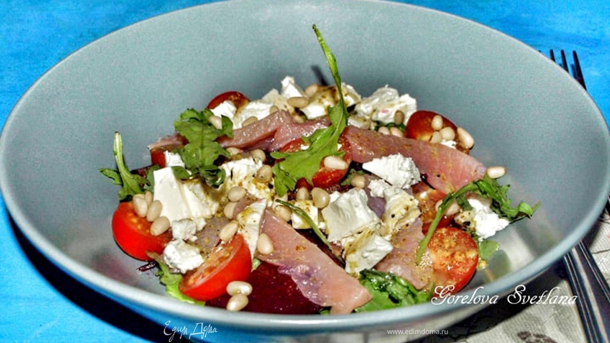 Салат со слабосоленой форелью, свеклой и сербской брынзой