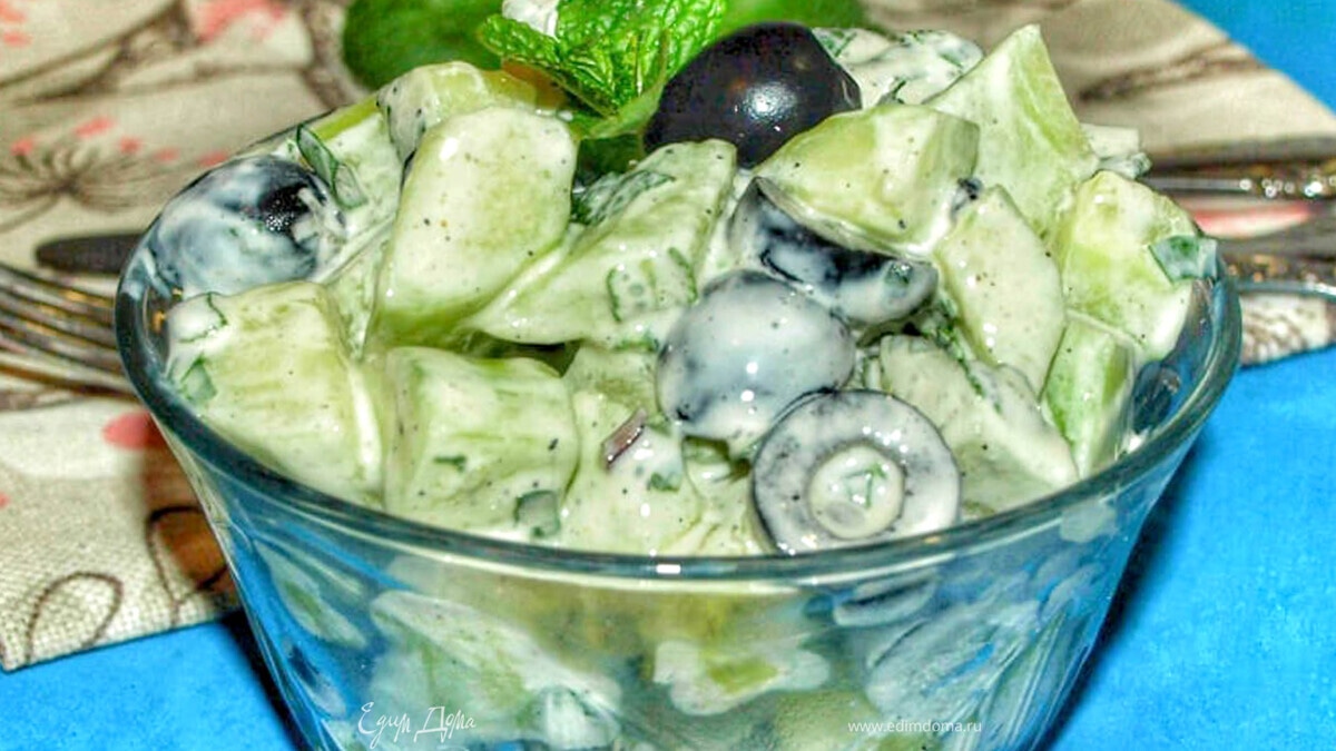 Салат из огурцов с маслинами и мятой