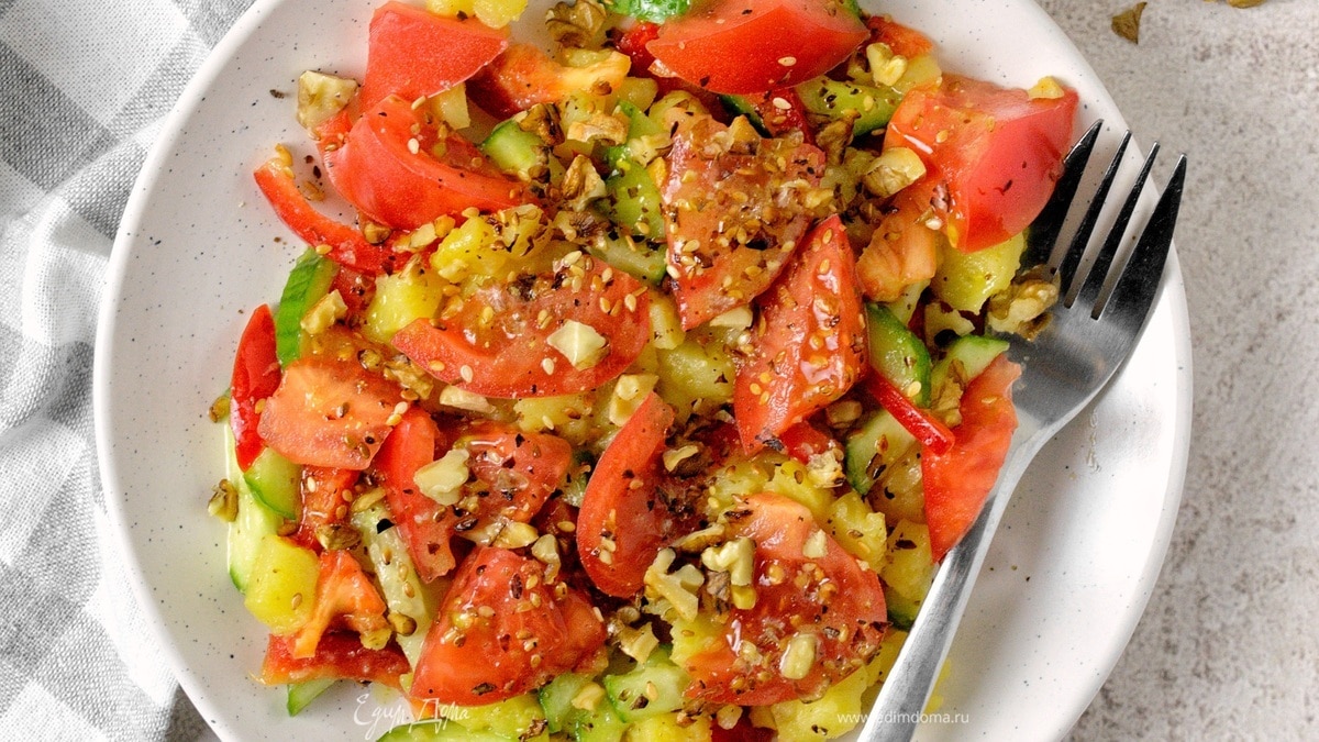 Ну очень простой салат! Но заправка, поджаренные орешки и кунжут добавляют особую пикантность и яркость блюду.