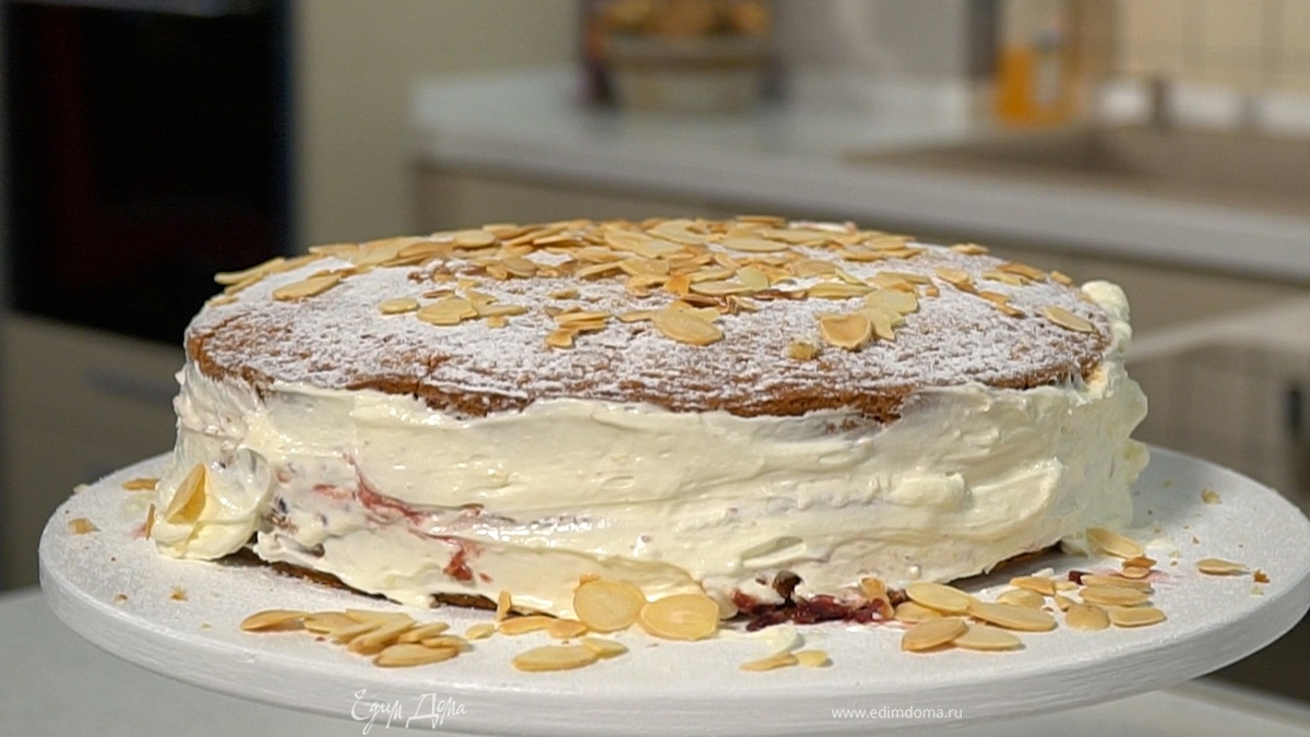 Бисквитный торт с вареньем из крыжовника