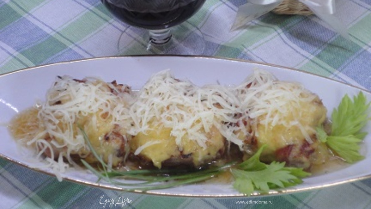 В сковороду, где обжаривались фрикадельки, влить вино, довести до кипения и вылить в форму с фрикадельками. Сверху фрикадельки посыпать сыром и запекать 20–25 минут в духовке при 180°C.
