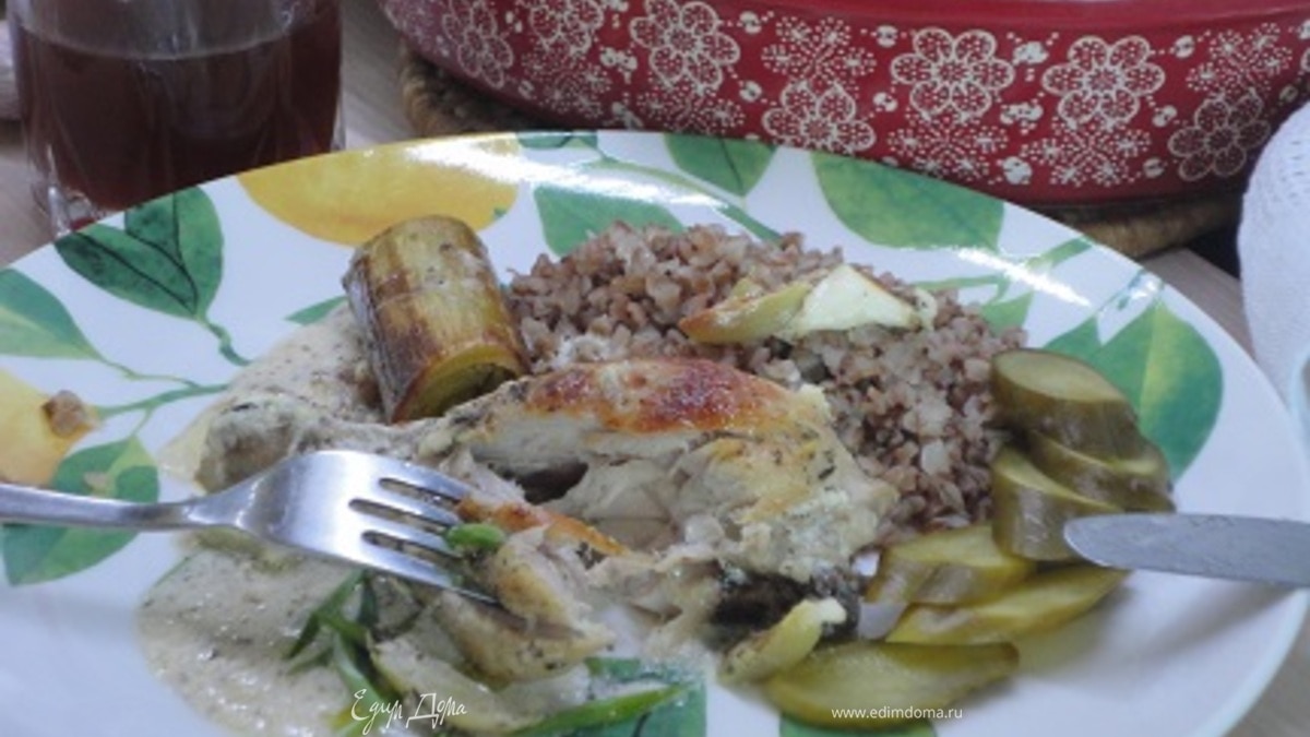 Курица с луком-пореем в сметанном соусе