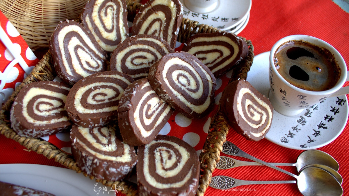 Обвалять рулет в кокосовой стружке для украшения и завернуть в ту же пленку. Убрать в холодильник на ночь или в морозилку для быстроты. - Шаг 18