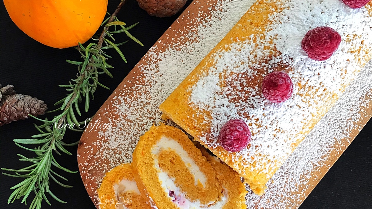 Сегодня у меня очень легкий и нежный рулет. Тыквенный бисквит всегда получатся очень нежным и влажным, а сметанный крем придает рулету легкую кислинку. Фрукты и ягоды добавляйте на свой вкус, я добавила немного банана и малины. Получилось очень вкусно. Угощайтесь!