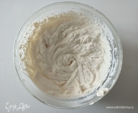 Рикотту взбить с сахарной пудрой, затем добавить маскарпоне и взбивать крем еще недолго. Готовый крем накрыть пищевой пленкой и поставить в холодильник до использования. Для приготовления крема рикотту можно заменить на творог (не сухой), пропустив его несколько раз через сито для более нежной и воздушной консистенции.