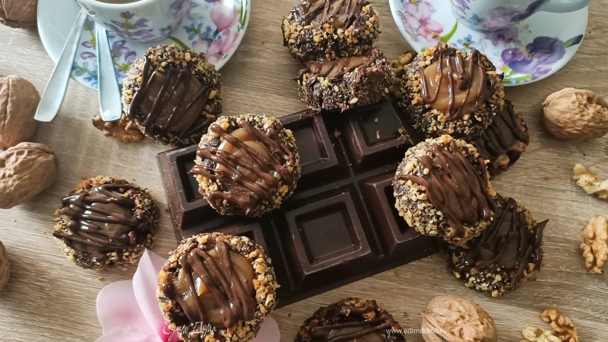 Шоколадно-ореховое печенье с мягкой карамелью