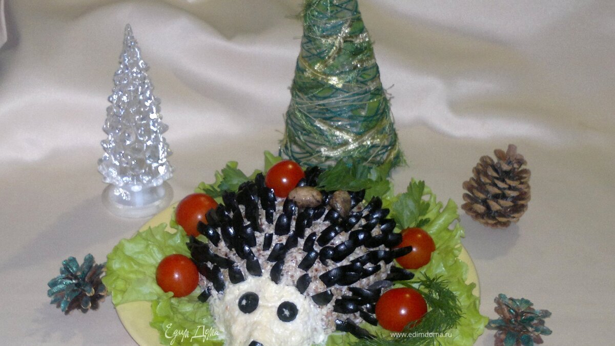 Подать салат «Ежик» на новогодний стол. Приятного аппетита! С наступающим Новым годом!