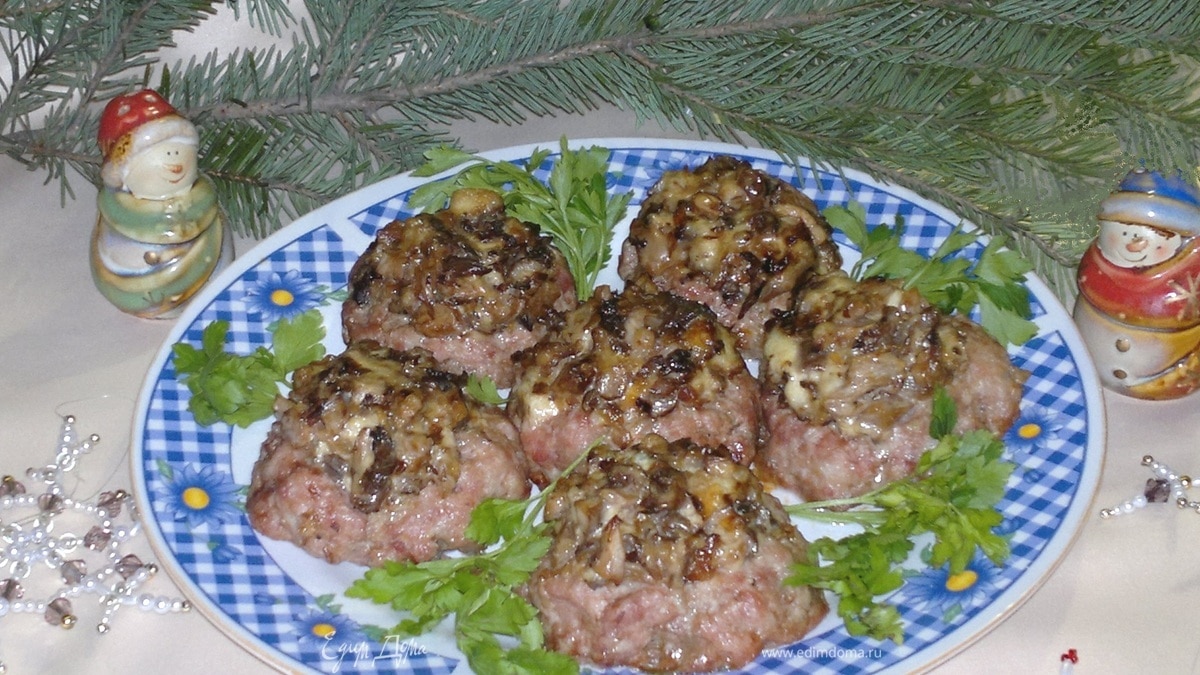Подать биточки с грибами к праздничному столу. На гарнир можно подать отварной рис, запеченные или тушеные овощи. Приятного аппетита! С наступающим Новым годом!