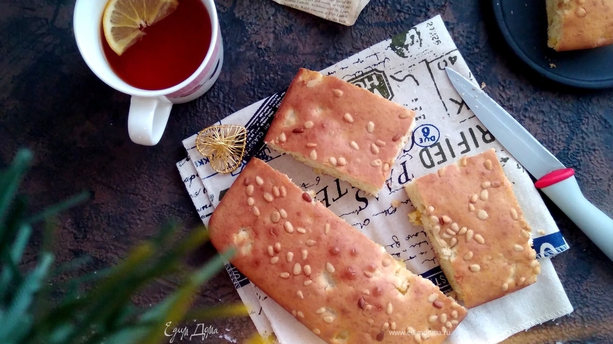 Дать остыть кексу и нарезать кусочками. Приятного аппетита!
