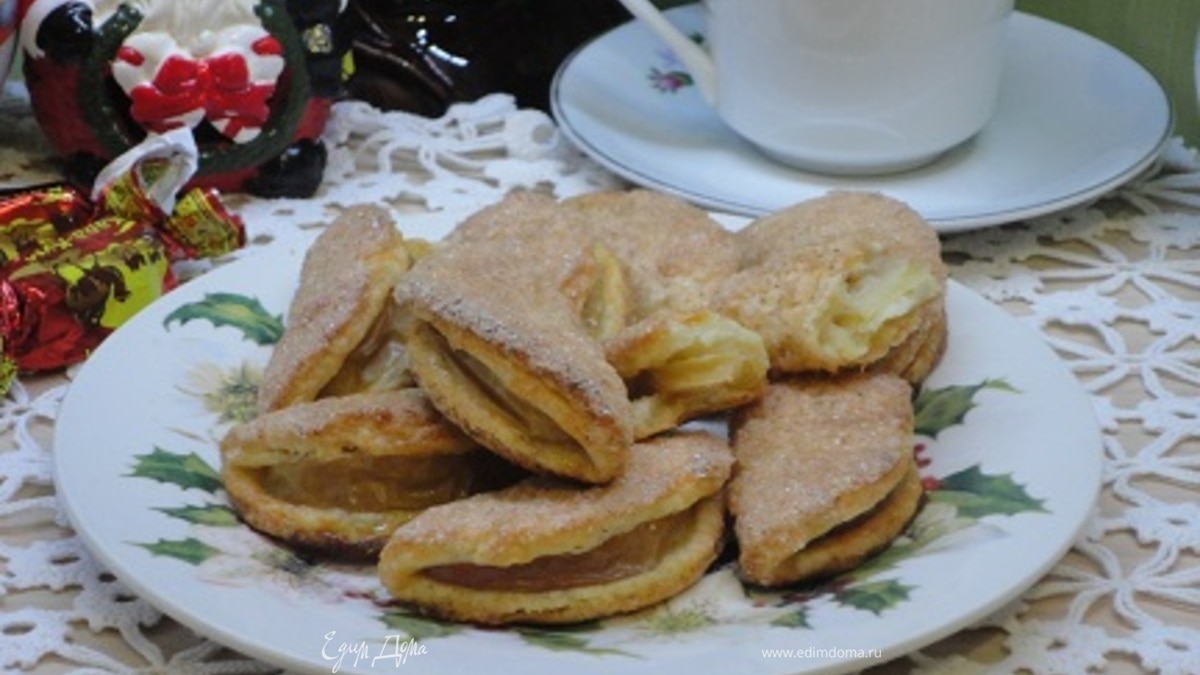 Погрузить печенье смазанной поверхностью в сахар с корицей. Выложить на противень, застеленный пергаментом. Выпекать 20–25 минут. Поверхность печенья должна хорошо подрумяниться, а яблоки — пропечься. - Шаг 6