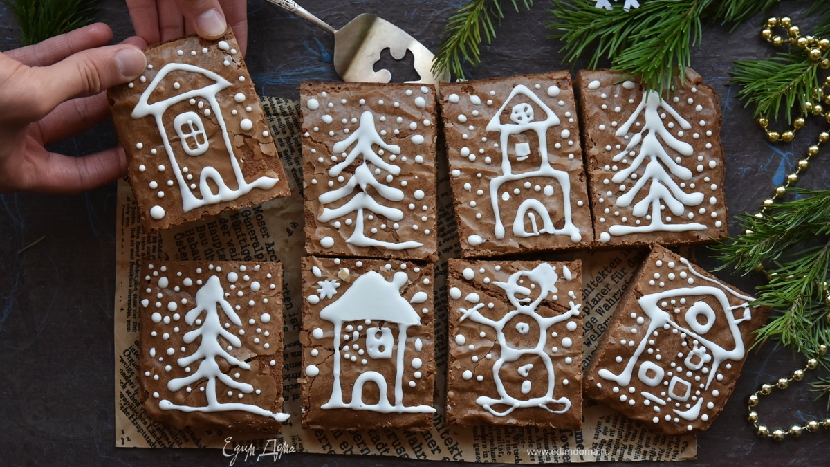 Возможно, этот десерт не такой эффектный, как торт, но своим вкусом ничем ему не уступает. Украшенный новогодними картинками брауни станет достойным завершением праздничного ужина.