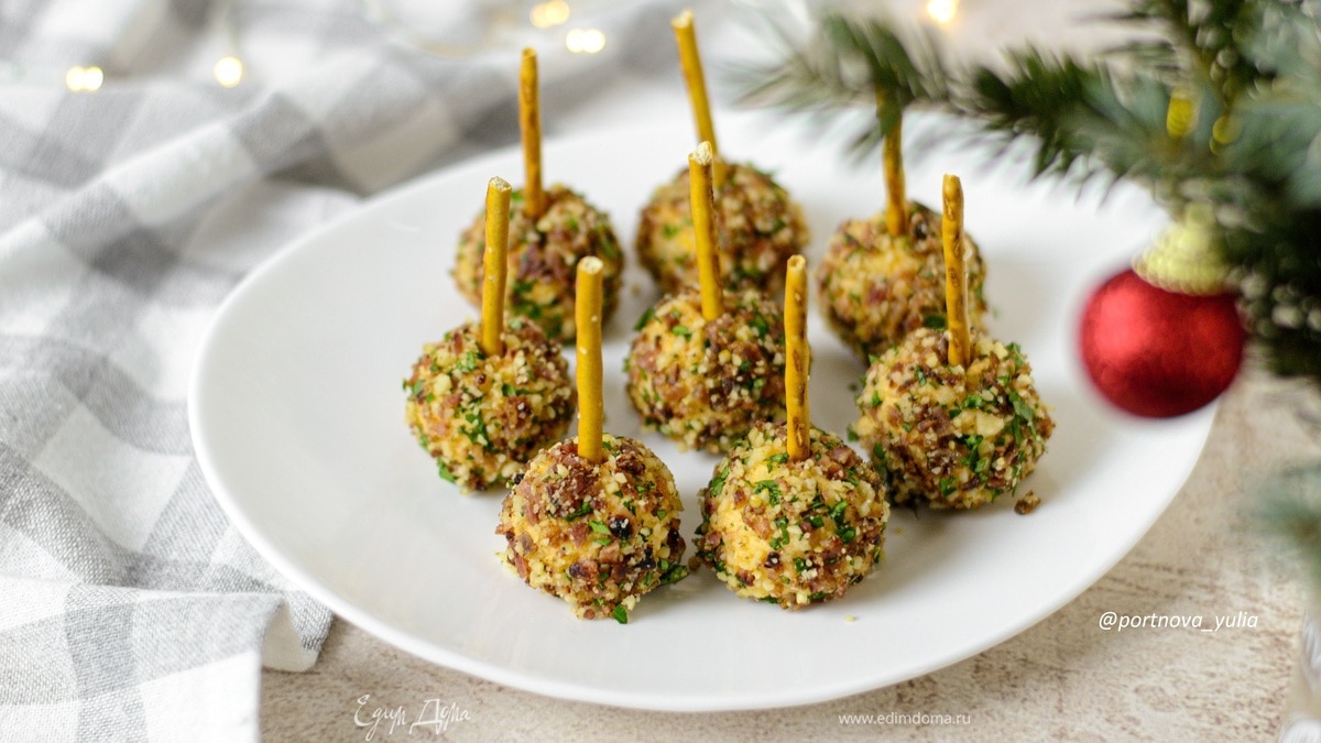 В каждый сырный шарик втыкаем палочку соленой соломки. - Шаг 8
