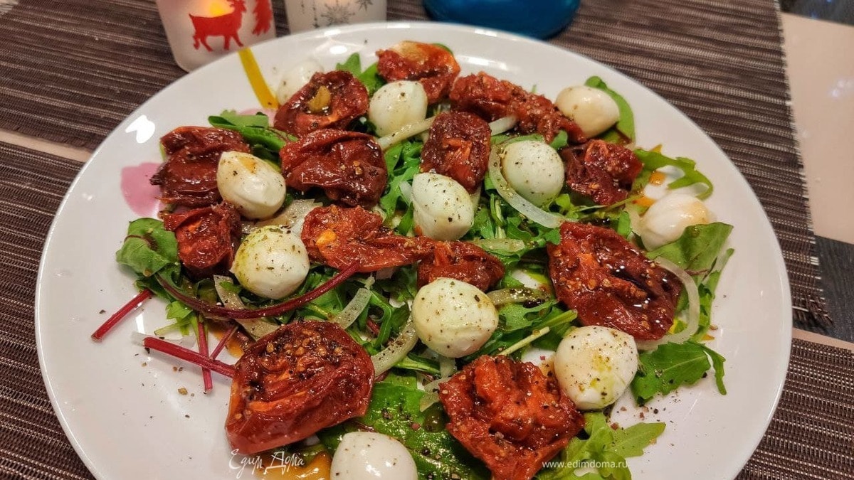 Салат с вялеными томатами и моцареллой