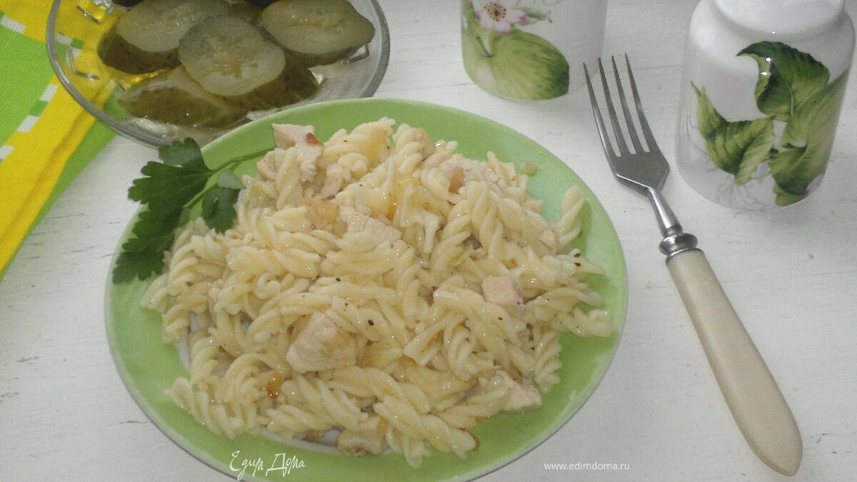 Добавить куриное мясо с луком в макароны и перемешать. - Шаг 7