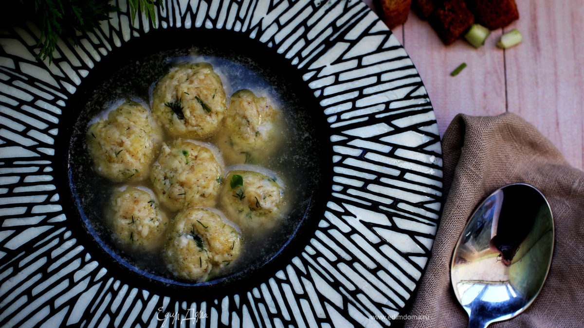 Шарики бросить в кипящий бульон, дать им всплыть (это занимает пару минут) и сразу подавать.