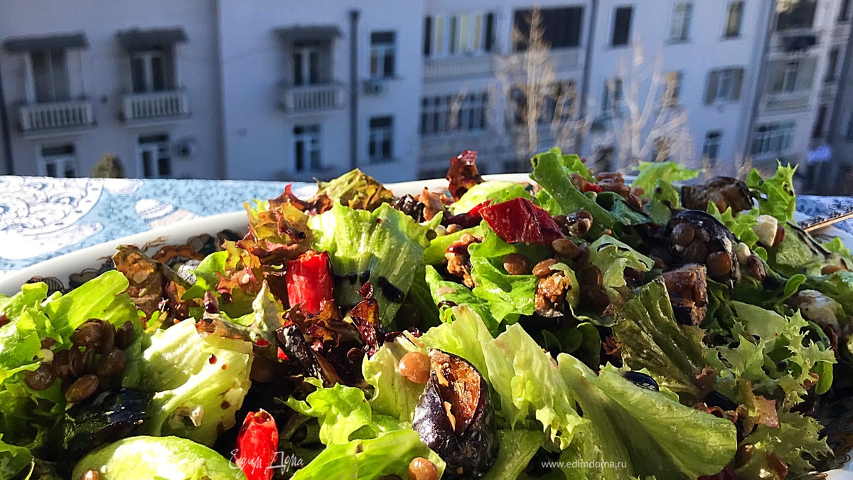 Салат из запеченных овощей с чечевицей