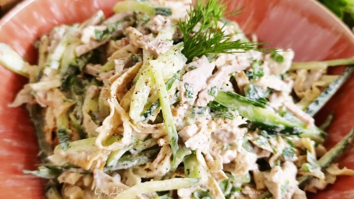 Вкусный и несложный в приготовлении салат. Свинину можно заменить на отварную курицу.