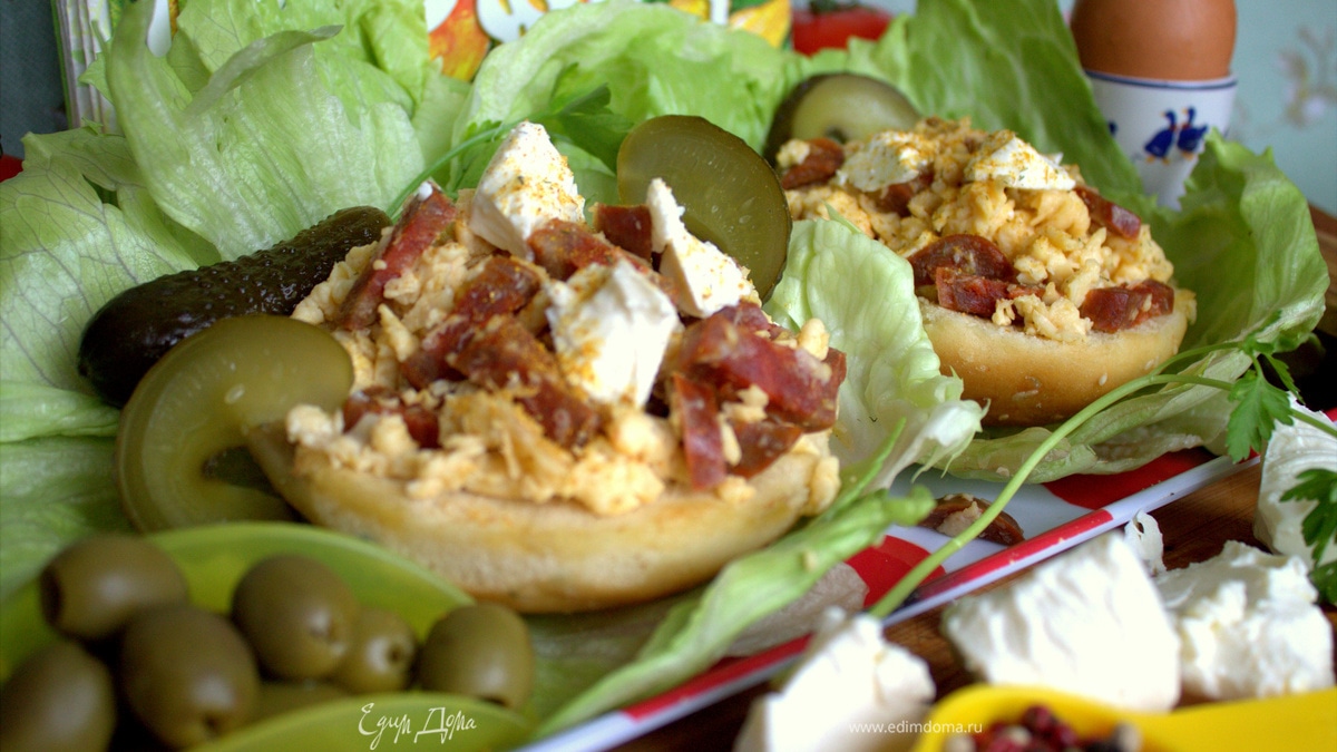Переносим омлет, пока не остыл, на булочку. - Шаг 11