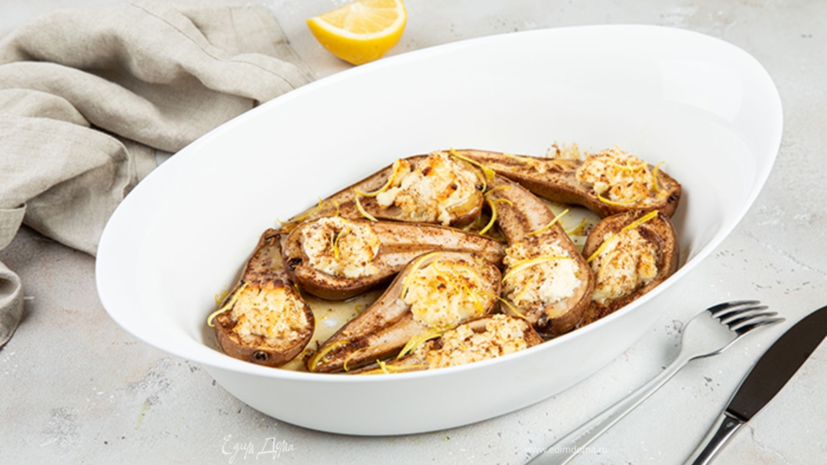 Груши, запеченные с медом, рикоттой и корицей