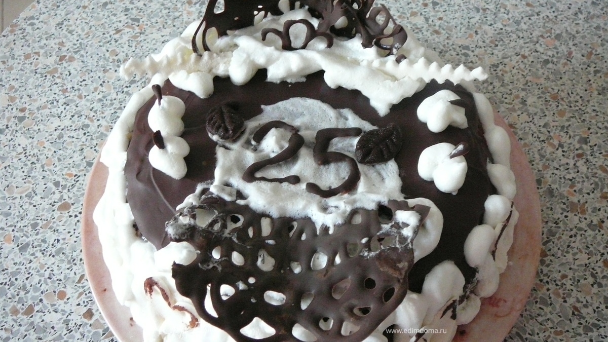 - Шаг 2Украсить торт можно растопленным шоколадом и взбитыми сливками. Приятного чаепития!