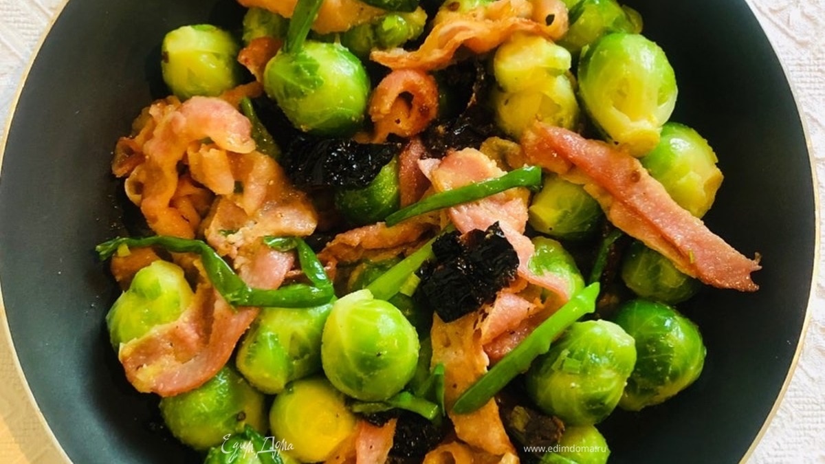 Теплый салат с брюссельской капустой и беконом