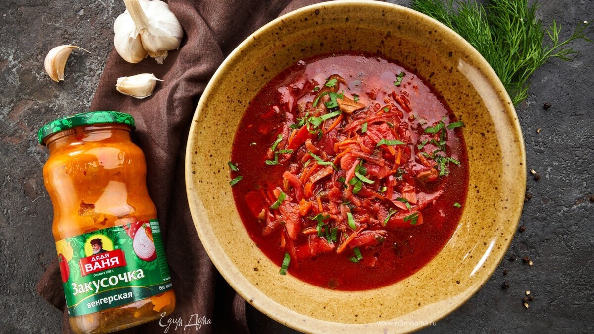 Когда свекла будет почти готова, выложите к ней закусочку «Венгерская» ТМ «Дядя Ваня», перемешайте. - Шаг 7